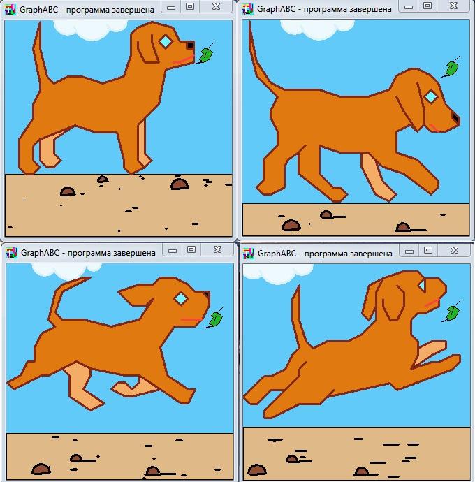 Одно из заданий внеурочной деятельности в 6 классе, демонстрация простой анимации за счёт смены четырёх изображений, с помощью модуля GraphABC.