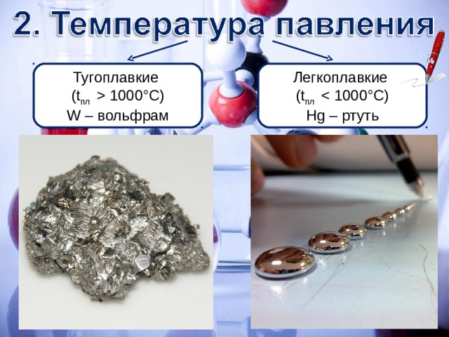 1000°С ) W – вольфрам Легкоплавкие ( t пл Hg – ртуть " width="640"