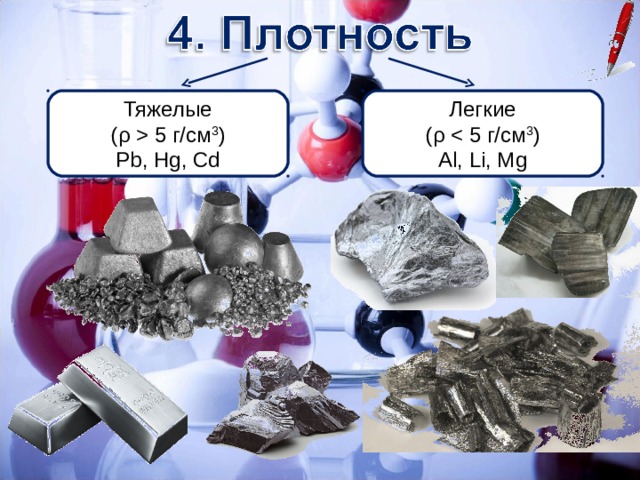 5 г/см 3 ) Pb, Hg, Cd Легкие ( ρ Al, Li, Mg " width="640"
