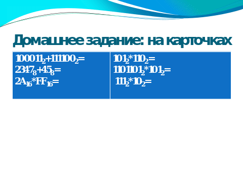 . Домашнее задание: на карточках