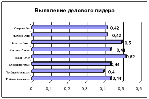 Для данного коллектива не присуща такая черта как борьба за лидерство. Все единодушно согласны с тем, что лидер в классе их командир, решение и указание которого является “законом” для остальных.