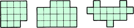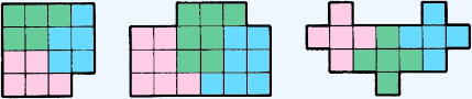 3. Разрежьте каждую из фигур на три равные части. (Резать можно только по сторонам клеточек. Части должны быть равны не только по площади, но и по форме.)