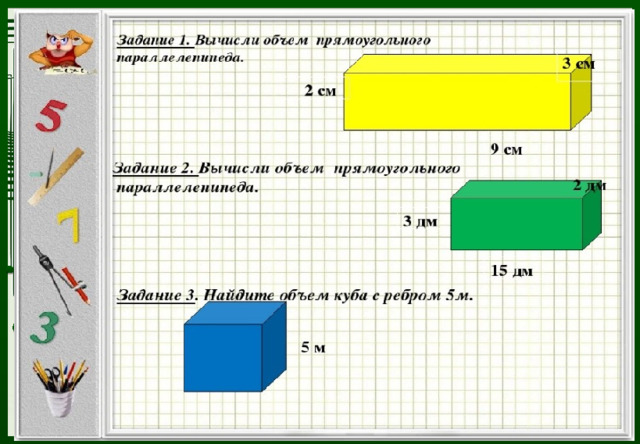 - На занятии ты научишься представлять и сравнивать геометрические фигуры, чертить и конструировать, находить периметр, площадь и объём фигур.