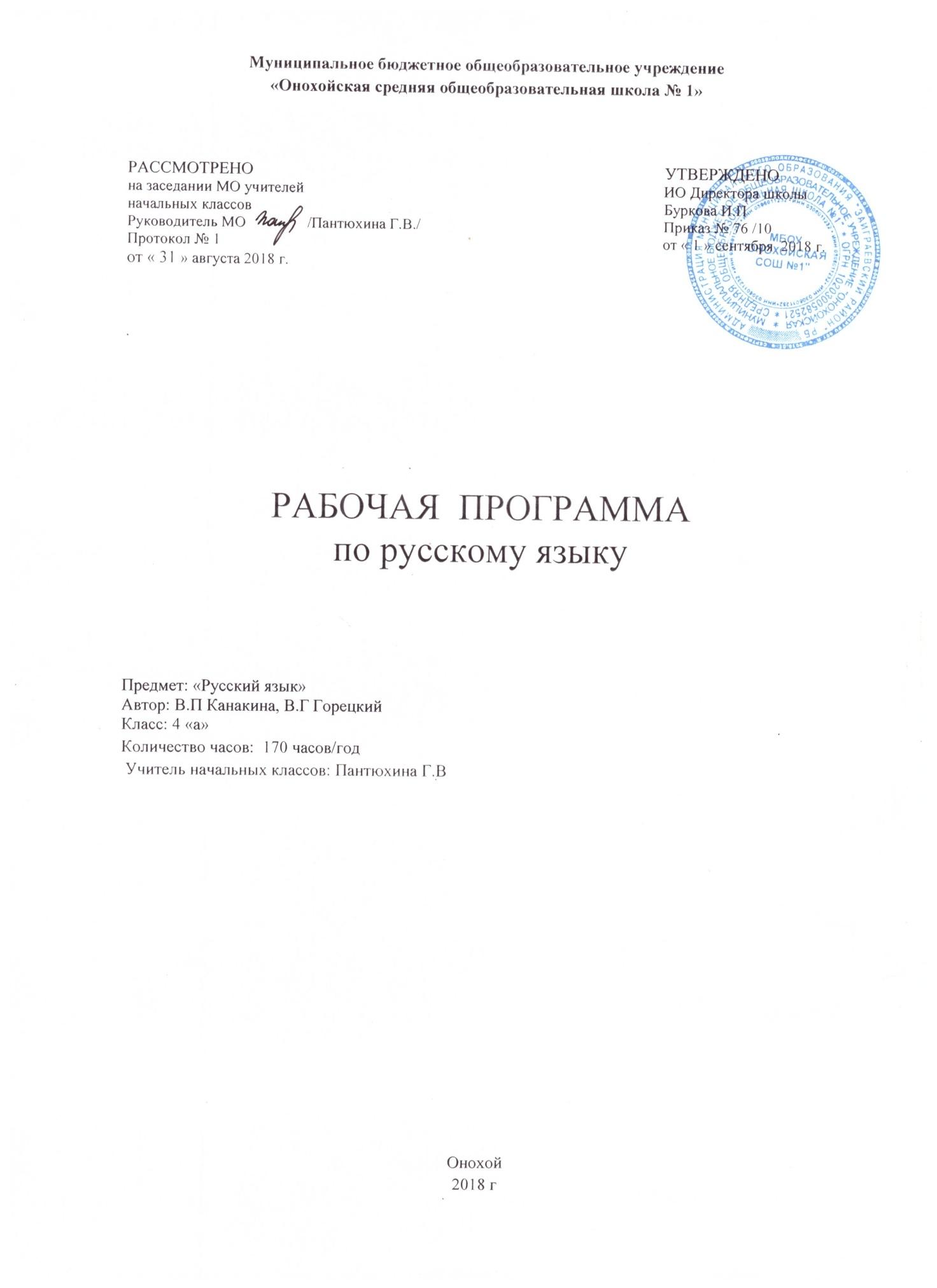 Программа составлена для учащихся 4 «а» класса общеобразовательной школы, изучающих предмет в объёме обязательного минимума содержания на базовом уровне (5 часов в неделю). Срок реализации 2018-2019 учебный год (34 недели). Объем часов учебной нагрузки, отведенных на освоение рабочей программы определен федеральным учебным планом начального общего образования и учебными планами образовательного учреждения.