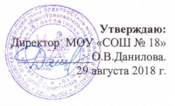 учебного плана МОУ «Средняя общеобразовательная школа №18» на 2018-2019 учебный год;