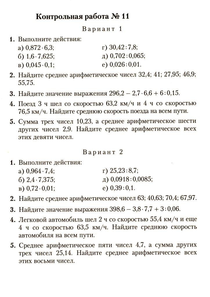 Умножение и деление десятичных дробей. Среднее арифметическое нескольких чисел. Решение текстовых задач.
