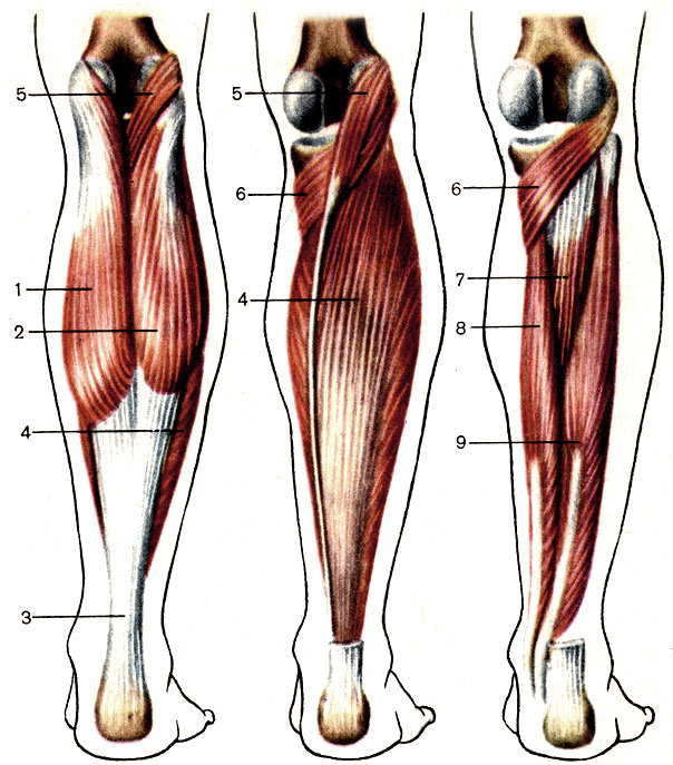 Тело человека не падает вперёд при стоянии - это предотвращают хорошо развитые мышцы и сухожилия, расположенные на задней поверхности голени.