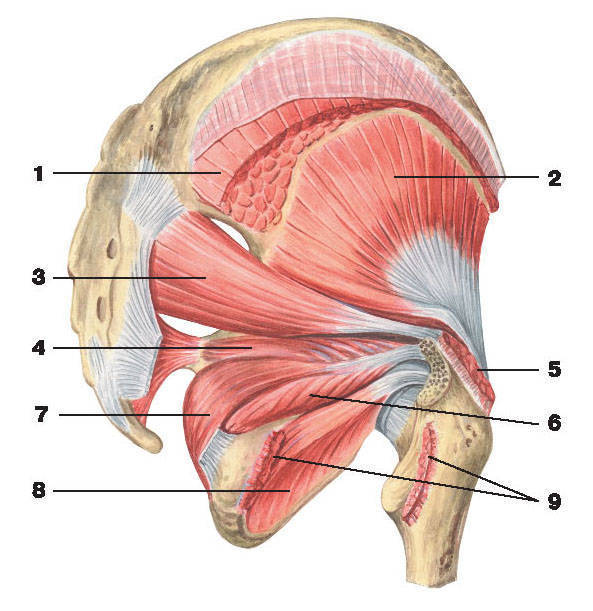 нижняя близнецовая мышца № ___, грушевидная мышца № ___.