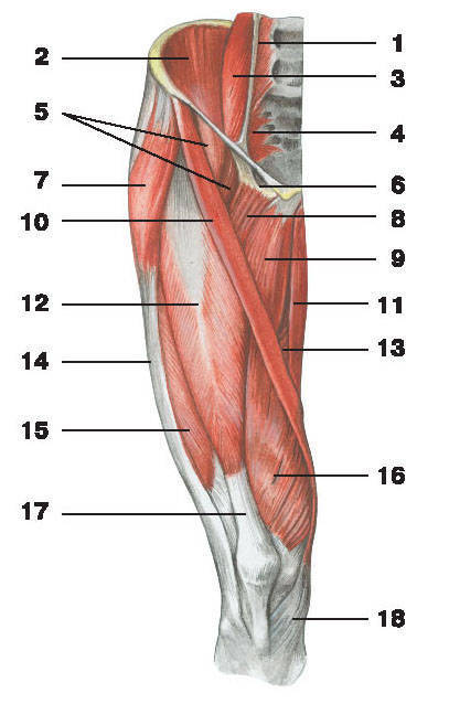 Большая ягодичная мышца № ___, двуглавая мышца бедра № ___, полуперепончатая мышца № ___, полусухожильная мышца № ___,