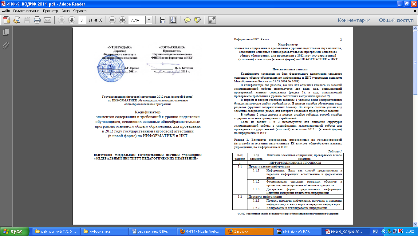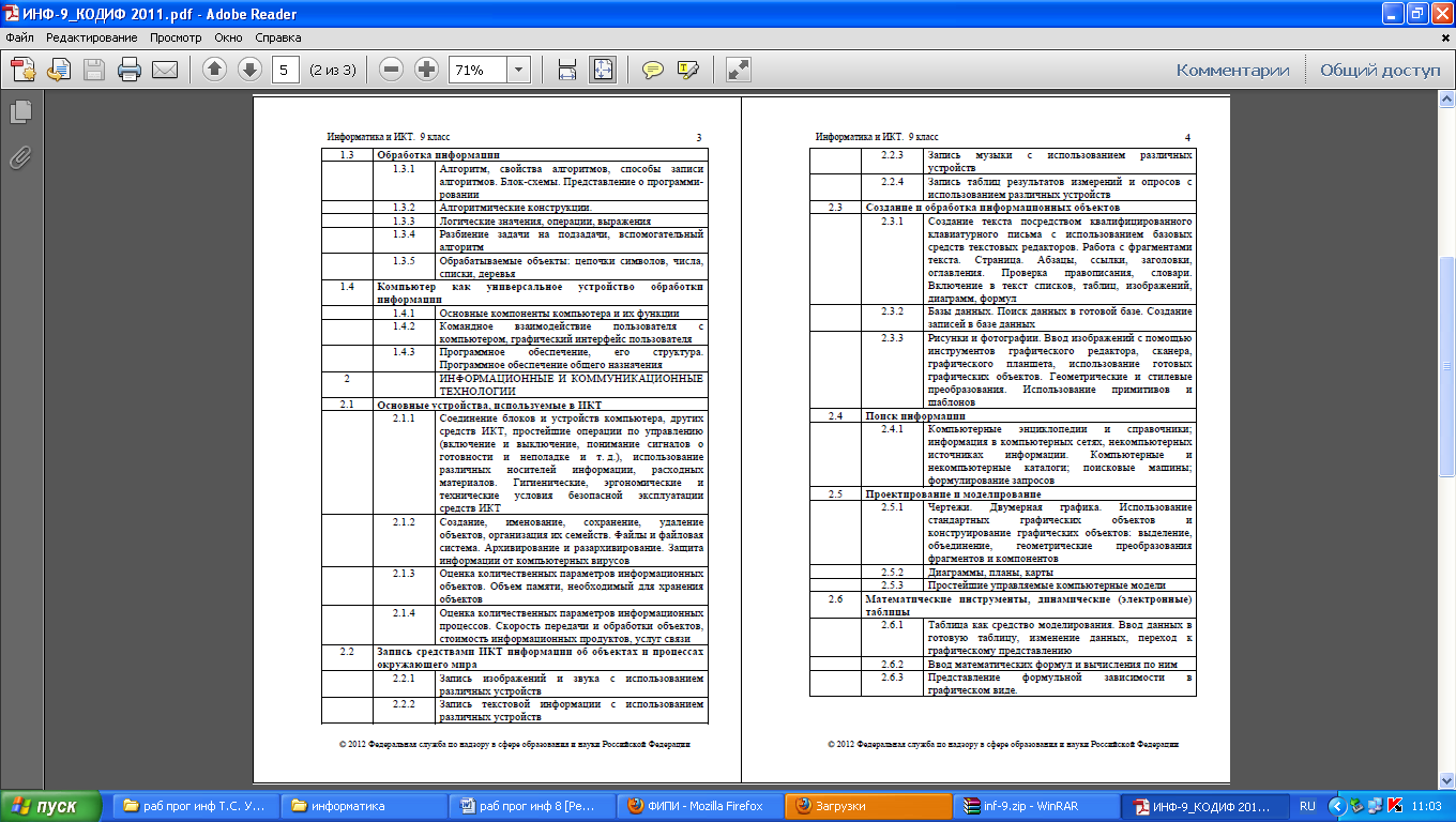 - федерального компонента Государственного стандарта основного общего образования по информатике и ИКТ;