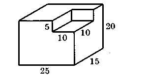 | Контрольная работа N 11 Вариант 1 ▲ 1. Вычислите площадь прямоугольника, длина ко торого равна 4 см, а ширина 2,5 см. Ответ выразите в квадратных миллиметрах. Вычислите объем прямоугольного параллелепипеда, измерения которого равны 3 дм, 1 дм, 2 дм. Выполните действия: 3 : 0,75 + (37 - 34,7)*6,6. Воспользуйтесь формулой пути s = v*tи найди те значение t, если v = 100 м/мин, s = 200 м. ■ 5. Воспользуйтесь формулой объема прямоугольного параллелепипеда и вычислите объем изображенной фигуры. Все размеры указаны в метрах.  ♦ 6. Длина прямоугольника равна 35 см. На сколько уменьшится его площадь, если ширину прямоугольника уменьшить на 4 см? |