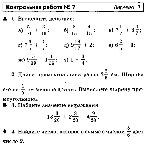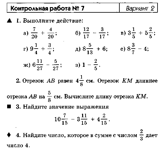 | Контрольная работа № 8 по теме «Десятичные дроби. Сложение и вычитание десятичных дробей» | | |