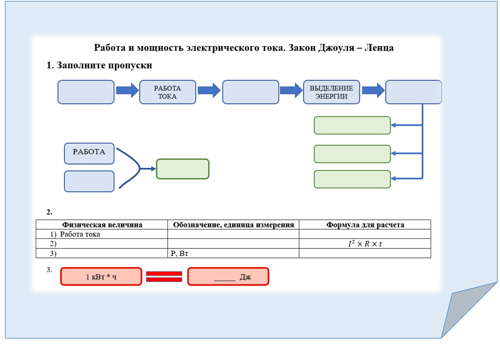 рабочий лист для закрепления пройденного материала