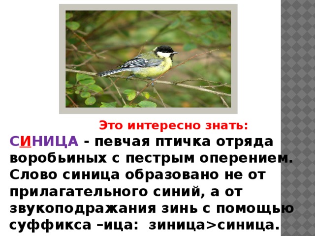 С И НИЦА - певчая птичка отряда воробьиных с пестрым оперением.