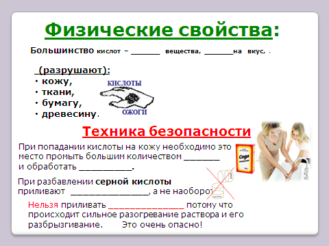 ?Запиши какими физическими свойствами обладают кислоты
