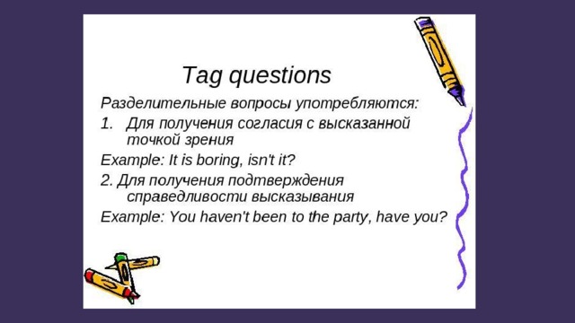 1. Tigers are dangerous animals, … 2. They have a wonderful garden , … 3. He bought an expensive TV-set , … 4. You have a terrible toothache , … 5. She has read an interesting book , … 6. We gave all possible answers , … 7. I asked a foolish question , … 8. It will be a useful exercise , … 9. His speech was boring , …