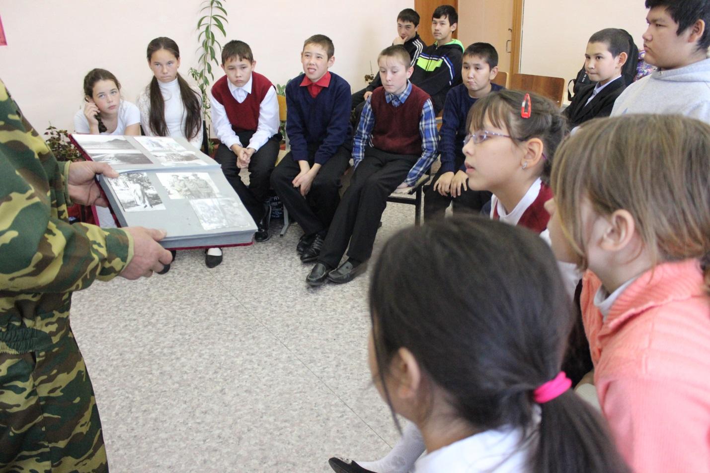Дети внимательно слушали его выступление, задавали много вопросов, с большим интересом разглядывали фотографии из альбома. В конце встречи учащиеся школы подарили памятный подарок и пригласили на чаепитие.