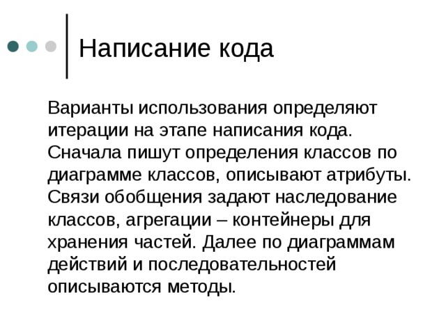 Для ОО анализа и проектирования используется язык визуального моделирования UML ( Unified Modeling Language). Диаграммы и спецификации языка UML связали исходный текст программы с характеристиками объекта автоматизации. Существует возможность автоматической генерации исходного кода программы по диаграммам UML и обратное преобразование (рефакторинг).