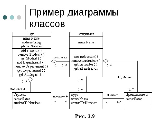 После того, как определены все актеры и прецеденты, процесс разработки переходит в фазу выделения объектов и классов. Классы соответствуют сущностям, определенным в описании прецедентов. Методы соответствуют действиям актеров. Классы и их взаимосвязь изображаются на диаграмме классов.