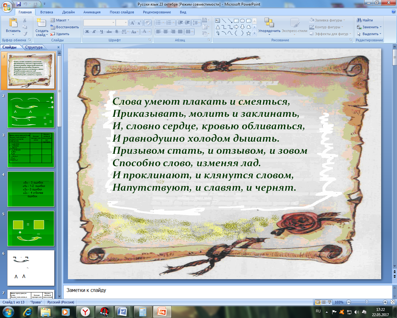 - Нет ничего сильнее слова. - Прочитаем стихотворение, которое мы учили во 2 классе.