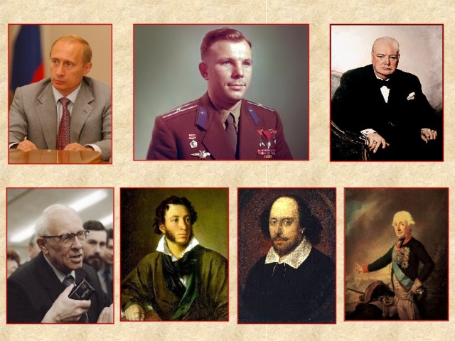 Использованные материалы : I . Интернет ресурсы: 1) http://www.nta-nn.ru/upload/iblock/838/evfsm.jpg - изображение В. В. Путина. 2) http://www.itogi.ru/7-days/img/417/ARTS-dnevnik-6hi.jpg - изображение У. Черчилля. 3) http://ross-bel.ru/d/618179/d/32.jpg - изображение Ю. А. Гагарина. 4) http://assets.nybooks.com/media/timeline/RIAN_archive_25981_Academician_Sakharov.jpg - изображение А. Д. Сахарова. 5) http://www.listread.ru/photo/authors/longdesc/1102-aleksandr_pushkin.jpg - изображение А. С. Пушкина. 6) http://img.bhs4.com/c5/7/c57f84e87b618efd4fef8365667c341ab2c0aa1a_large.jpg - изображение У. Шекспира. 7) http://nash-suvorov.ru/images/users/photos/medium/bc339afdced611917cbfd76e880eeef8.jpg - изображение А. В. Суворова.