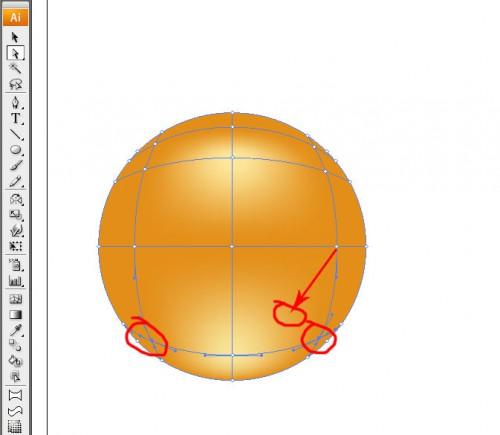 Для того, чтобы придать большую реалистичность шарику выделите при помощи белой стрелочки и зажатой клавиши ‹Shift› две соседние точки рядом с нижним рефлексом и возьмите для них цвет пипеткой (‹I›) где-нибудь посередине между любой из них и центральной точкой.