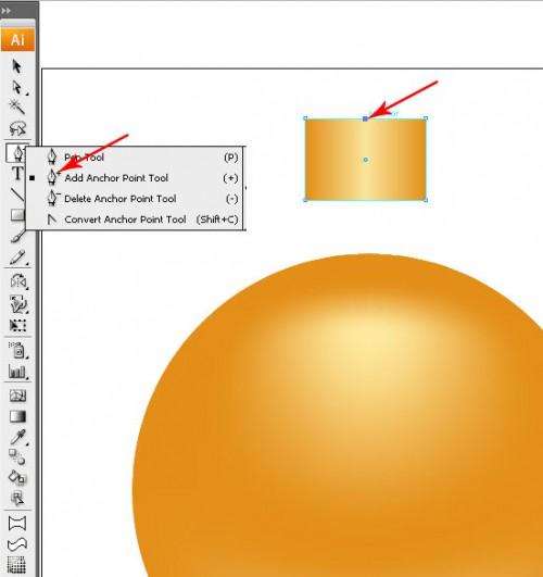 Но это пока просто прямоугольник, для того, чтобы превратить его в цилиндр, добавим одну точку посередине на на верхней его линии при помощи инструмента «AddAnchorPointTool» (‹+›), это «перо с плюсом».