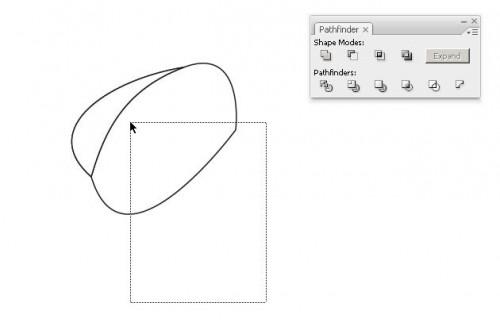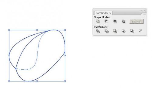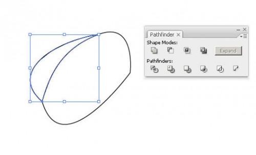 Теперь это контур нужно разделить на две части. Я предпочитаю это делать с помощью палитры «Window->Pathfinder», то есть путем вычитания объектов и их умножения. Корректирующим объектом нам послужит контур, проходящий через начало и кончик листика и перекрывающий часть его.