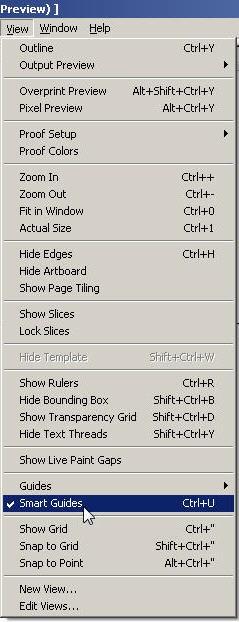 Чтобы было удобнее рисовать, включите «умные направляющие» — при наведении курсора они подскажут где линии пересечения, где перпендикуляр, и даже обозначат середину объекта. Эти данные частенько бывают необходимы при рисовании в Иллюстраторе. Для того, чтобы включить направляющие, вам нужно поставить галочку в View->SmartGuides.