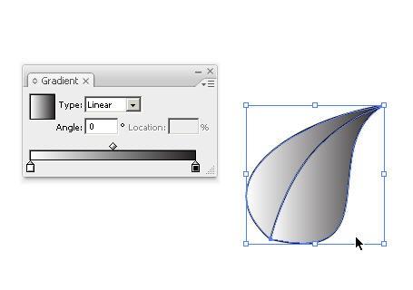 Черно-белый листик вам не очень? Ну тогда его можно перекрасить. Я использовала цвета для градиента #AFE03B и #8DC50E. Вызвать палитру градиентов можно с помощью меню «Window->Gradient». У каждой половинки расположите градиент в соответствии в предполагаемым освещением. Например вот так: