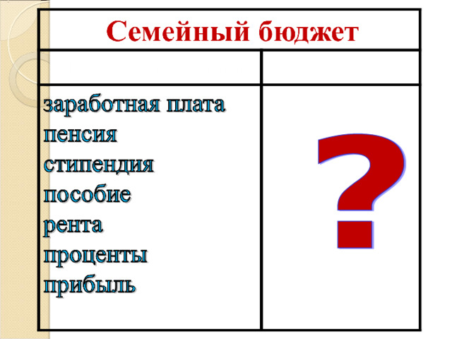 - Заработная плата папы и мамы, стипендия брата – это ___________ нашей семьи.