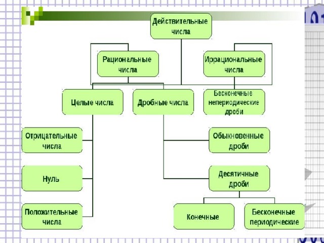 Целые числа – бывают положительными и отрицательными. Совокупность целых чисел образует множество целых чисел. Число вида а/в,
