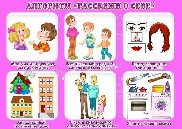 Игра «Какая у вассемья?» Рассказывают по алгоритму: