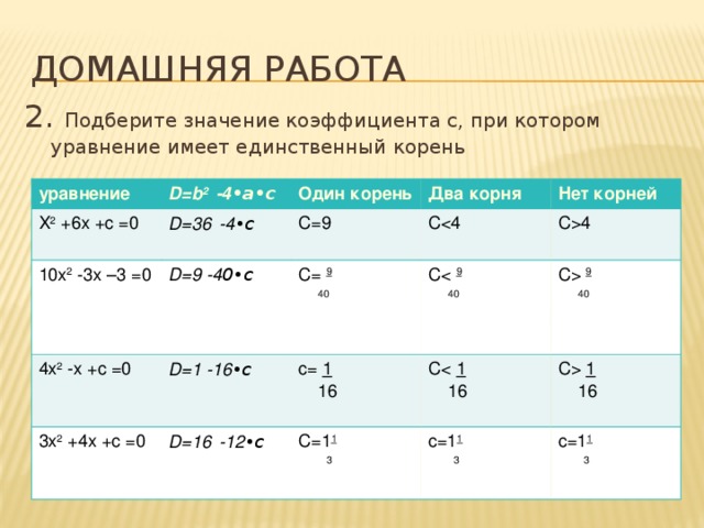 2. Подберите значение коэффициента с, при котором уравнение имеет единственный корень