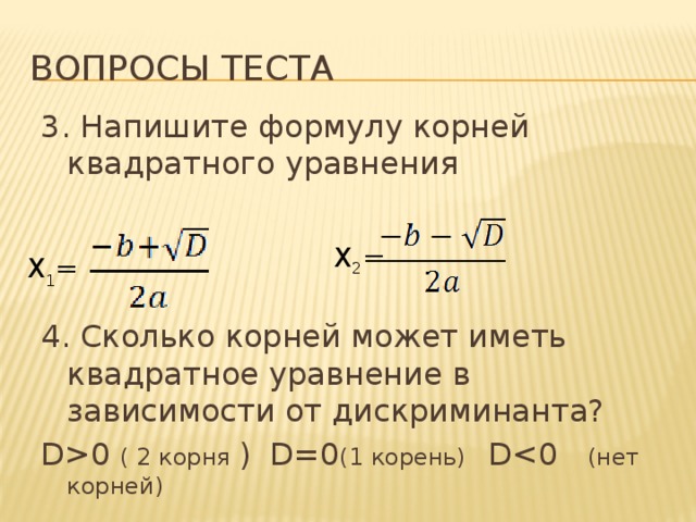 3. Напишите формулу корней квадратного уравнения