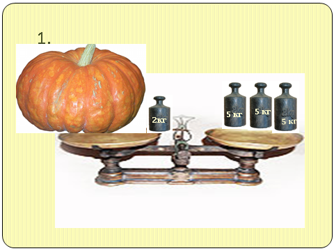 Ребята, перечислите предметы, которые здесь изображены художником? (Весы, гири, тыква).