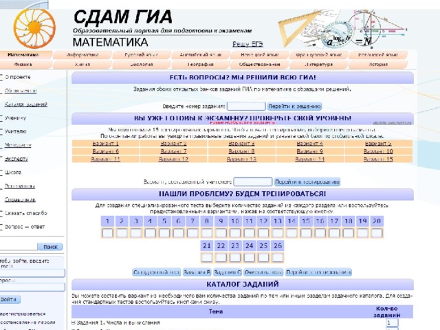 На сайте «Сдам ГИА» представлены как задания по отдельным темам, так и типовые варианты экзаменационных работ.
