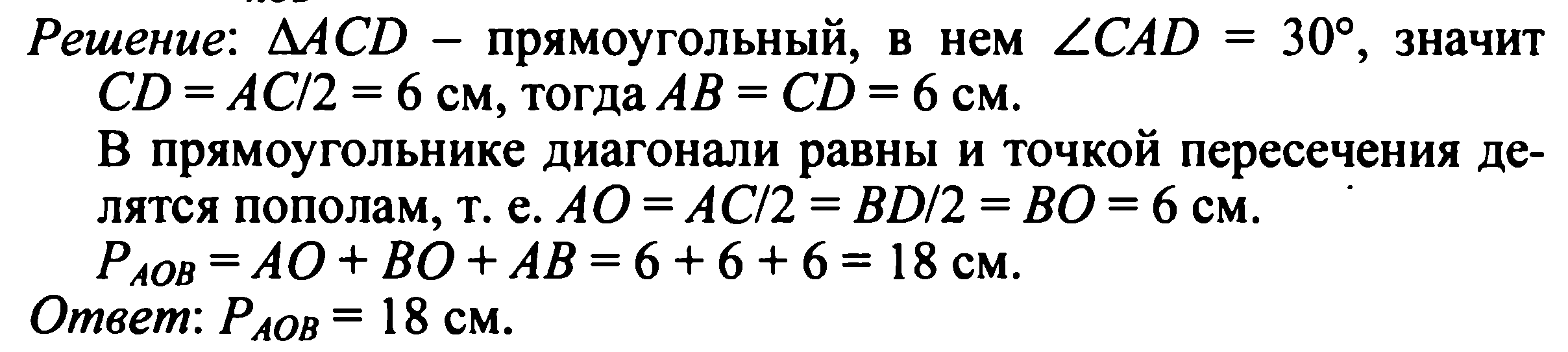 № 403 у доски. Дано: ABCD – прямоугольник, AC ∩ BD = O, CAD = 300, AC = 12 см. Найти: P AOB