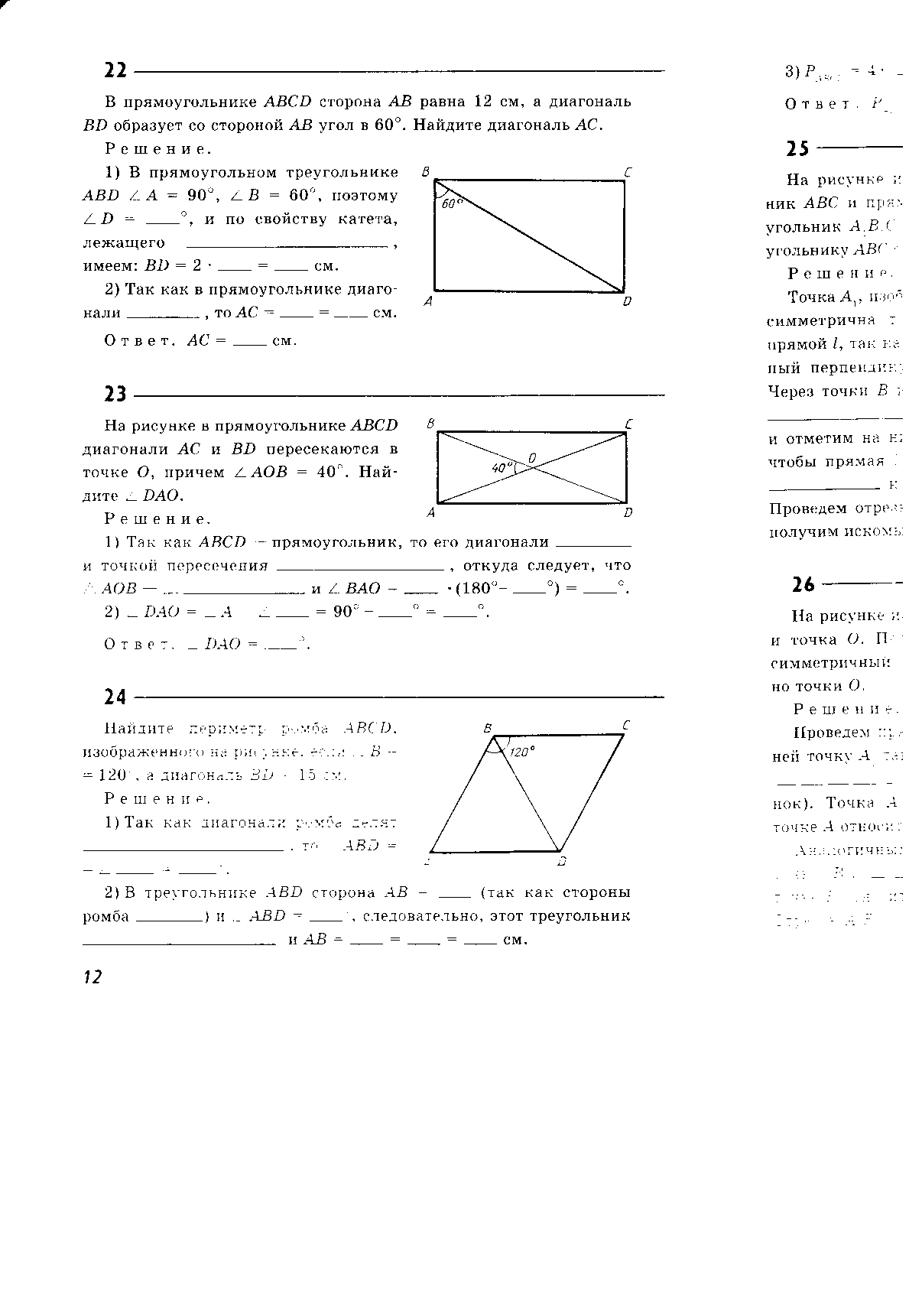 2) Так как в прямоугольнике диагонали ______, то