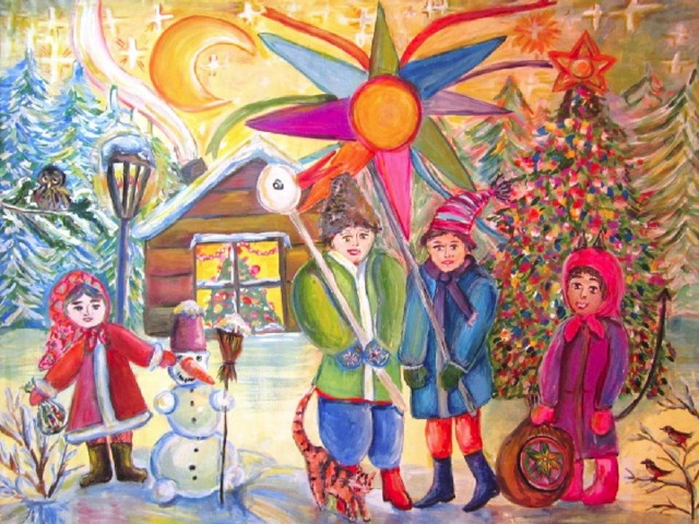 Презентация "Рождественские колядки" включает в себя очень яркие и поучительные иллюстрации по теме.