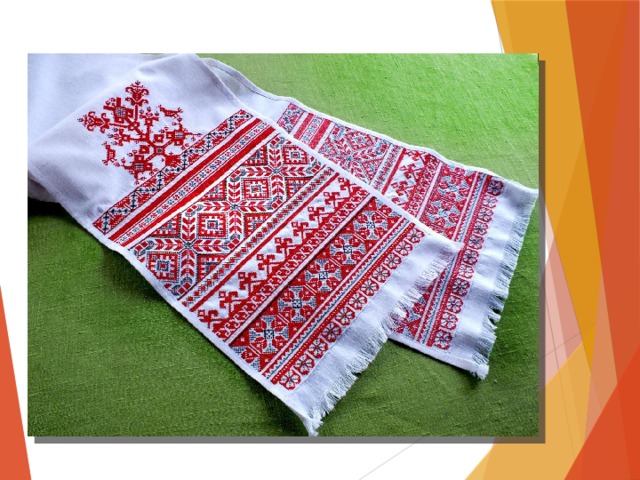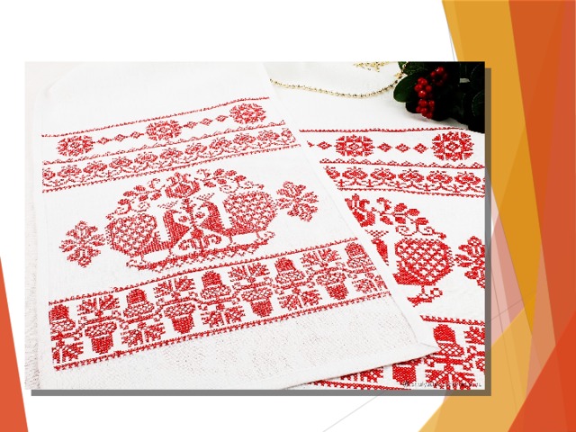 Красные узоры крестьянской вышивки воспринимаются как земля, получившая энергию солнца и способная дать урожай.