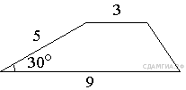 | 4 | Боковая сторона трапеции равна 5, а один из прилегающих к ней углов равен 30°. Найдите площадь трапеции, если её основания равны 3 и 9.