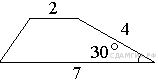 | 4 | Боковая сторона трапеции равна 4, а один из прилегающих к ней углов равен 30° . Найдите площадь трапеции, если её основания равны 2 и 7.