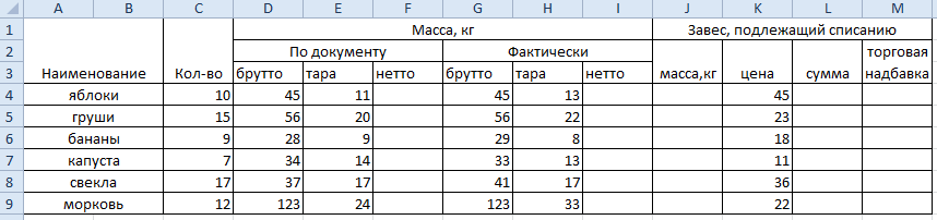 3. Найти массу (кг) товара, подлежащую списанию.