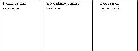 | Түсіну | Жигсо» әдісі бойынша «Сауда және қалалар » тақарыбын өздері талқылап, өздері қайталау масатында қосымша тапсырмалар таратылады жаңа тақырыпқа қадам басу үшін | Оқушылар көлемді мәтінді әрқайсысы жеке-жеке топ ішінде оқып шығып топпен талқылайды, сосын топтар құрамы өзгертіліп, құрамында әр бастапқы топтан бір белсенді оқушы бар жаңа (сарапшылар тобы) топтар құрылды.Құрылған сарапшы топ берілген тапсырмаларды біріге талқылап орындайды Осыдан кейін олар өз топтарына қайта оралып, өздерінің бұрынғы топтағы достарына кезекпен өз жанұяларында түсінген материалдарын тиянақты түрде жеткізіп, үйрет керек | Оқушылардың мұндағы мақсаты берілген тапсырманы өздері талқылап , өз ой-пікірлерімен санаса білу Топпен жұмыс жасау | |