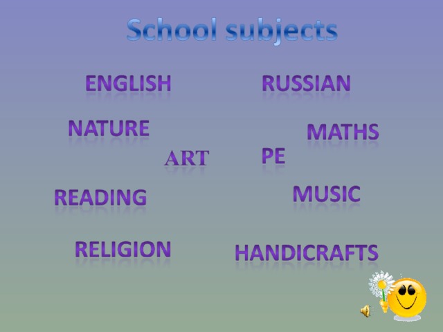 Today is … . We have 5 lessons: Maths, Russian, English, … and Handicrafts. In Maths we … and play. In Music lesson we sing … and dance. In handicrafts we make … .