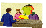 I buy clothes in a shop.