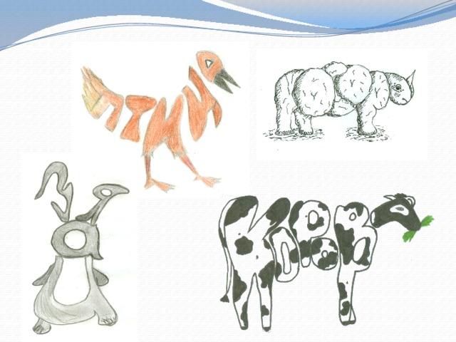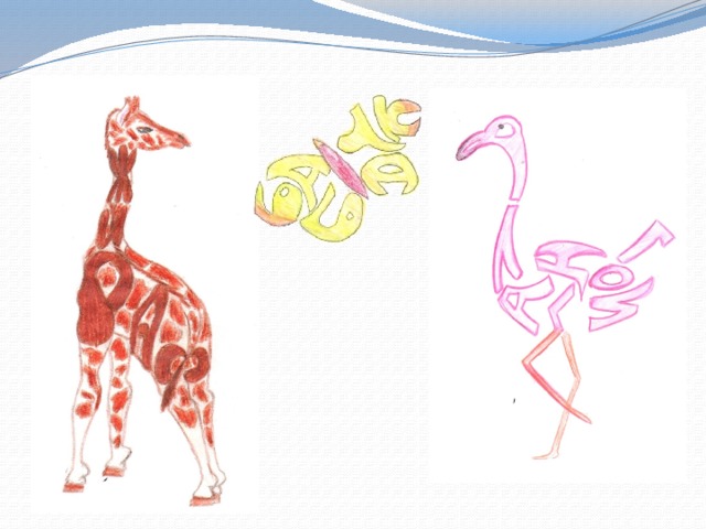 - Компоновка и прорисовка букв в силуэте. Удаление силуэта ластиком;