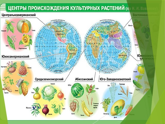 Центры происхождения культурных растений (по Н.И. Вавилову)