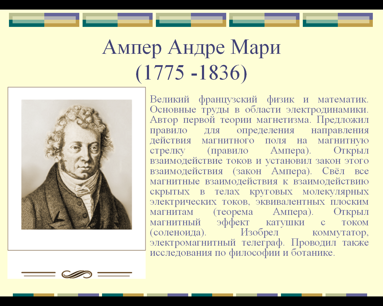 Изучая, как проводники различной формы, по которым протекает ток, взаимодействуют между собой, Ампер установил, что это взаимодействие может рассматриваться как совокупность взаимодействий сколь угодно малых участков этих проводников с током (элементов тока).